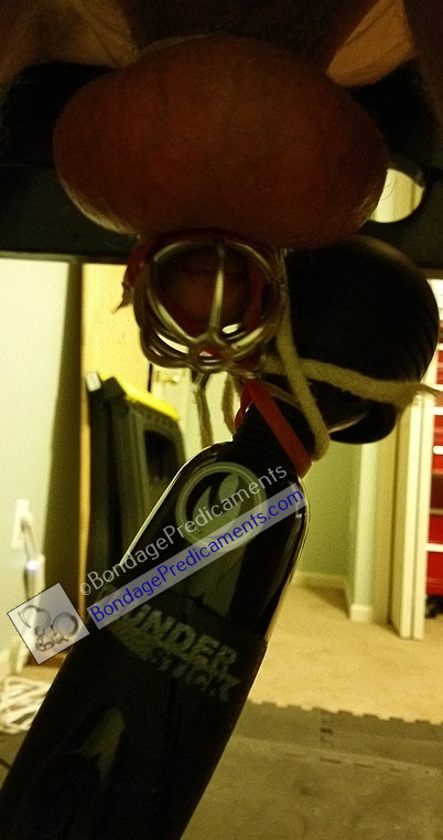 As always, make sure bdsm/kink play is safe, sane, and consensual. Never leave your sub alone during bdsm play. Prepare everything needed before restraining your sub so there’s no need to step away until after you’ve released him. When using rope or any tightly fitting cuffs, always periodically feel your sub’s hands/feet/balls (whatever is tied) to ensure they aren’t cold. Cold is a sign of circulation loss which needs to be addressed immediately by removing the restraints in that area before your sub gets hurt. When using any powered devices (battery or AC), keep in mind that although rare, things could be defective and get hot and/or catch fire (most of you have probably heard about incidents with a cell phone battery in the news lately). So it’s important to be close by especially when using any powered devices, just in case.