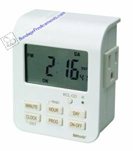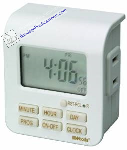 This lamp timer will allow you to control two vibrating wands at the same time. For example, one secured to your sub’s dick, and the other secured between his balls and ass. Or one wand hanging from above, barely touching his shaft. And the other rubber banded to the head of his dick.