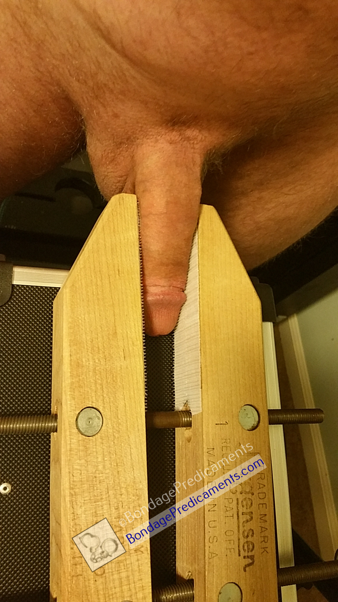 You could also close the clamp on your sub's hard (or soft) dick so he's already feeling the velcro pressed up against his dick, then add a vibrating wand laying on top of his cock head to see how much bigger his dick can try to grow. As a result, it will will press up against the velcro even more.