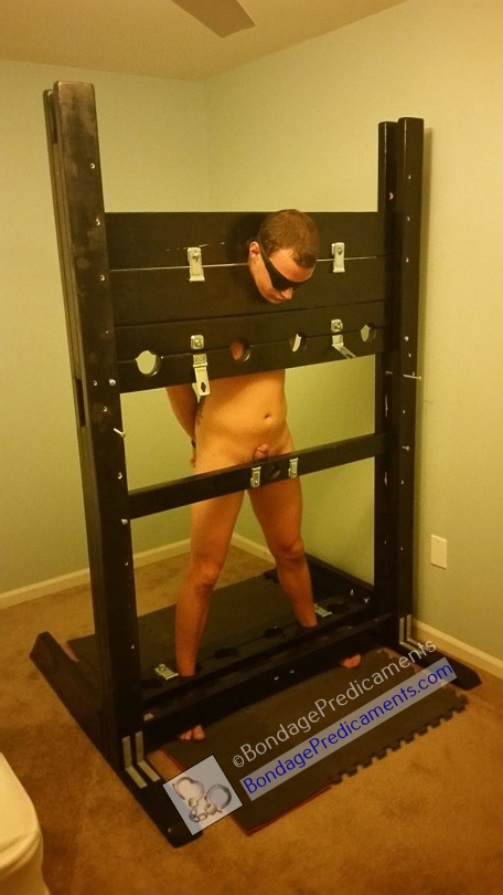 Then I got his hands locked in, and his dick/balls locked in the cock stocks.