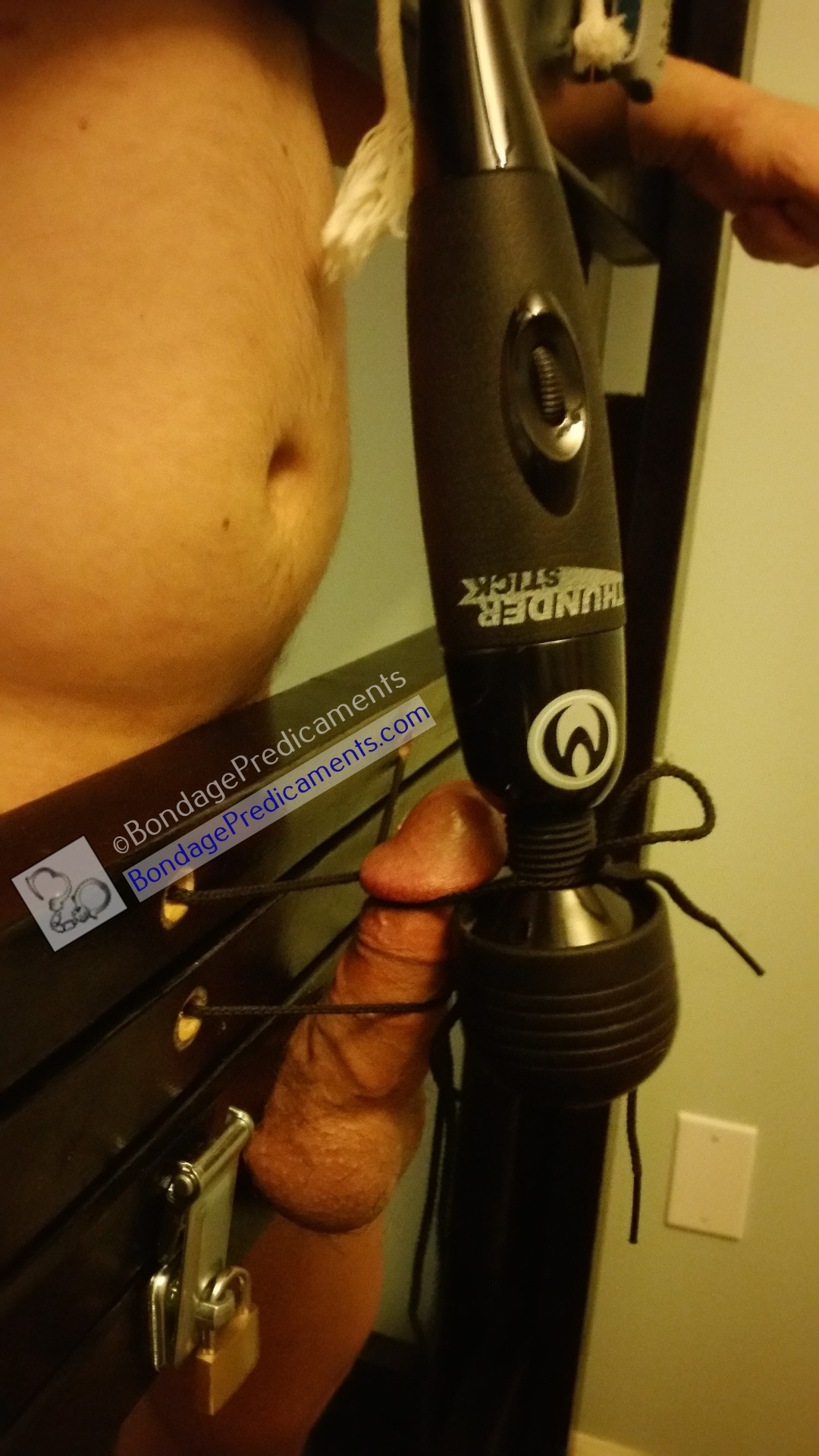Secure wand to that ultra-sensitive spot just under the head of his dick…