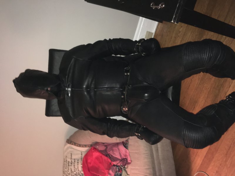 Very good, detailed observations in this one! You're on the right track, except less the edge, and more the dildo. I love your idea about putting the keys to his restraints in the lock box! I didn't do that in this one, but I'll have to remember that for the future. ;-) Oh and no posture collar. I think you're just seeing the bottom part of the hood there. Has anyone come up with any ideas relating to the black rope that you can see in the last pic? Hint: If you look at previous blog posts, specifically some of the posts on the second full page of blog posts as of now, you'll see what that thin black rope leads to...not necessarily in this session, but you'll see what's on the other end of it. Once you see that, I'm sure the ideas of how it may have been used here will be flowing into your devious minds!